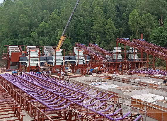 兩臺HPT液壓圓錐破,兩臺圓振篩,3臺VSI6X制砂機(jī),3臺XSD洗砂機(jī)