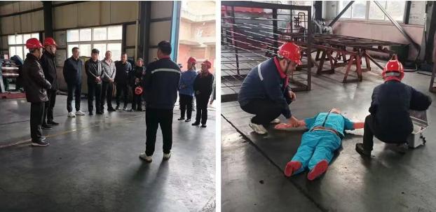 本次演練模擬了5T行車制動(dòng)裝置突然失靈,導(dǎo)致現(xiàn)場(chǎng)人員“受傷” 的緊急場(chǎng)景。險(xiǎn)情就是命令。公司應(yīng)急小組迅速集結(jié),10余名成員立即進(jìn)入實(shí)戰(zhàn)狀態(tài),協(xié)同出擊,有序救援。匯報(bào)組第一時(shí)間報(bào)告并撥打急救電話;疏散組高效引導(dǎo)人員撤離,拉起警戒線;救援組攜帶器材火速抵達(dá),對(duì)“傷員”進(jìn)行初步救治;指揮層立即啟動(dòng)預(yù)案,現(xiàn)場(chǎng)指揮并按規(guī)定上報(bào)。整個(gè)流程環(huán)環(huán)相扣,忙而不亂,展現(xiàn)了高效的應(yīng)急處理能力。