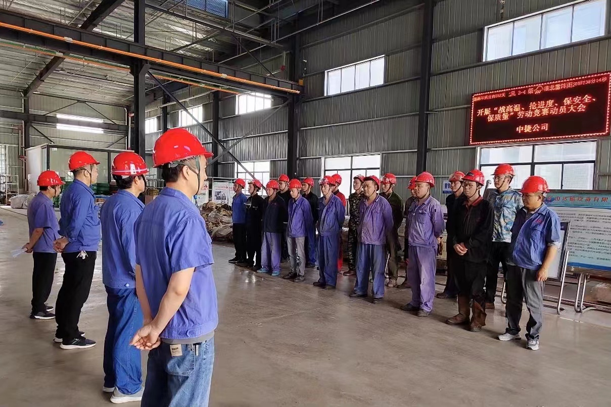 “大家有沒有信心圓滿達成目標?”“有!”整齊響亮、鏗鏘有力的應答聲,掀起了為期三個月的“一站一搶兩?!?即戰高溫、搶進度、保安全、保質量主題勞動競賽的序幕,激發了車間全體干部職工完成任務的決心和信心。中捷公司上下緊緊抓住全年目標任務這個核心、奮發有為,抓進度,搶工期,強力推進項目建設。