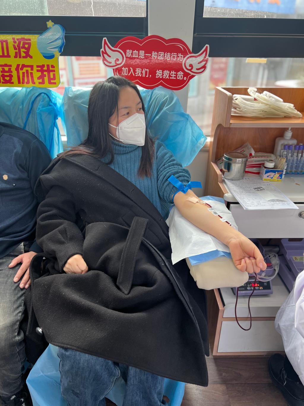 活動現(xiàn)場,青年職工們在志愿者的引導(dǎo)下,依次進(jìn)行信息登記、健康問詢、血液檢驗、靜脈采血,符合獻(xiàn)血條件的職工紛紛擼起袖子,一股股溫暖的熱血傳遞著淮海青年濃濃的愛意,一袋袋鮮紅的血液匯聚成守護(hù)生命的愛的暖流。