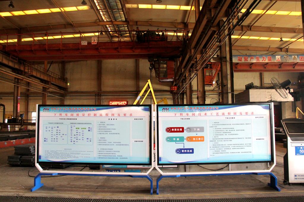 積極宣傳企業(yè)文化、安全環(huán)保和質(zhì)量工藝等知識(shí),推動(dòng)形成特色文化氛圍,提升職工凝聚力。堅(jiān)持降本增效原則,自主設(shè)計(jì)安裝車間宣傳欄,統(tǒng)一規(guī)劃設(shè)計(jì)黨建、安全、質(zhì)量、技術(shù)工藝等各版塊內(nèi)容,并在醒目位置安裝燈箱、宣傳噴繪等,實(shí)現(xiàn)公司使命、愿景、核心價(jià)值觀、經(jīng)營管理理念“上墻”。