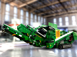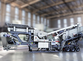 700-900mm的原料進入J45顎破履帶移動破碎站進行粗碎,而后粗碎后的物料進入I44R反擊破履帶移動破碎站進行二段破碎。二段破碎后,大于31.5mm的物料通過循環(huán)篩返料皮帶送回反擊破繼續(xù)破碎,31.5mm以下的混合料輸送到S130履帶式篩分移動站,經(jīng)過三層篩網(wǎng)的分離,最終分出0-5/5-10/10-20/20-31.5四種成品料。