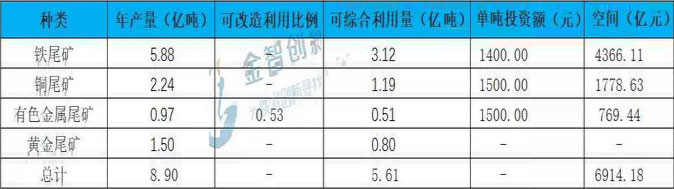 表1 我國尾礦綜合利用市場空間